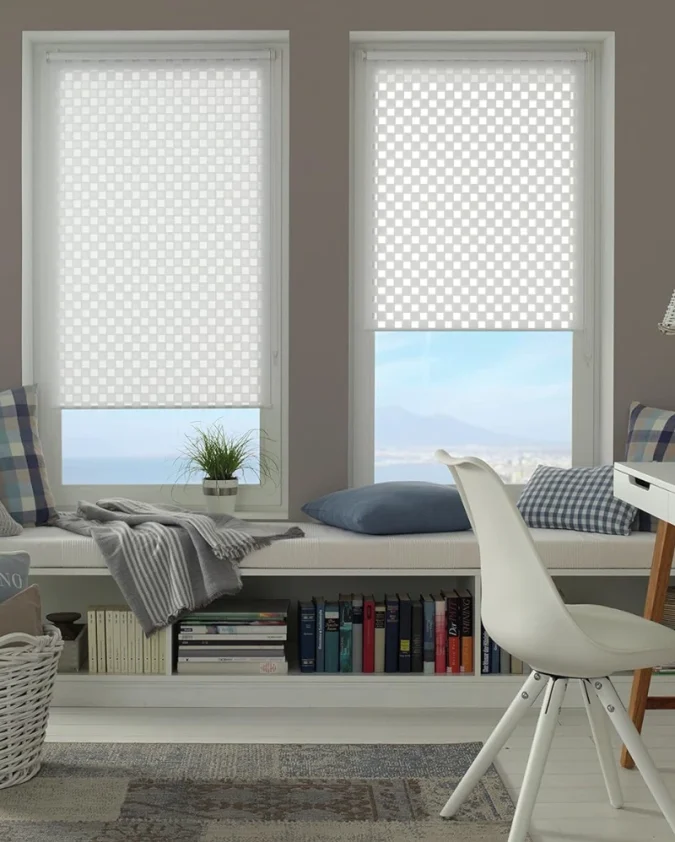 Elegantna rolo zavjesa s kvadratnim Cut out uzorkom i Easyfix montažom bez bušenja. Visokokvalitetni poliester i moderna forma u jednom.