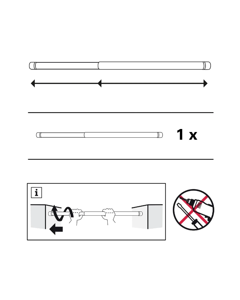 Karniša za zavjese na napinjanje promjera 23/26 mm omogućuje jednostavnu montažu bez bušenja. Zahvaljujući modernoj bijeloj boji i čvrstoj metalnoj izvedbi, idealna je za brzo i uredno rješenje u svakom interijeru.