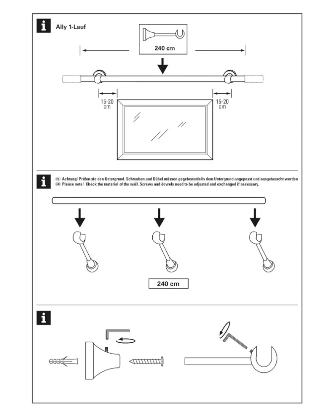 Jednokanalna karniša Ally, plemeniti čelik, promjer 19 mm, duljina 160 cm.