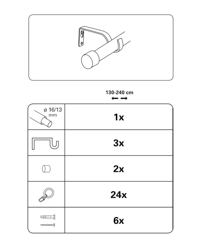 Karniša za zavjese Cap, promjera 16/13 mm, crna, 130x240 cm