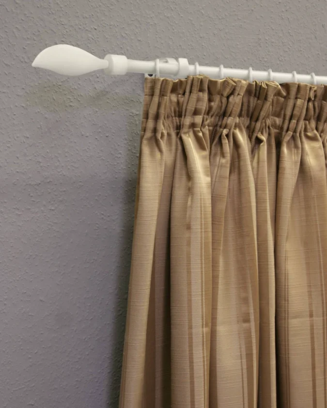 Robusna karniša većeg promjera u bijeloj boji, jednostavnog dizajna koji se lako uklapa u svijetle interijere.