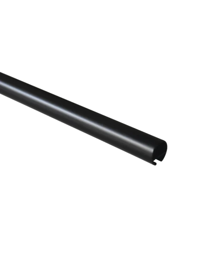 Moderna karniša s unutarnjom vodilicom koja omogućuje glatko pomicanje zavjesa. Promjer 20 mm i crna matirana obrada daju snažan, elegantan vizualni dojam.