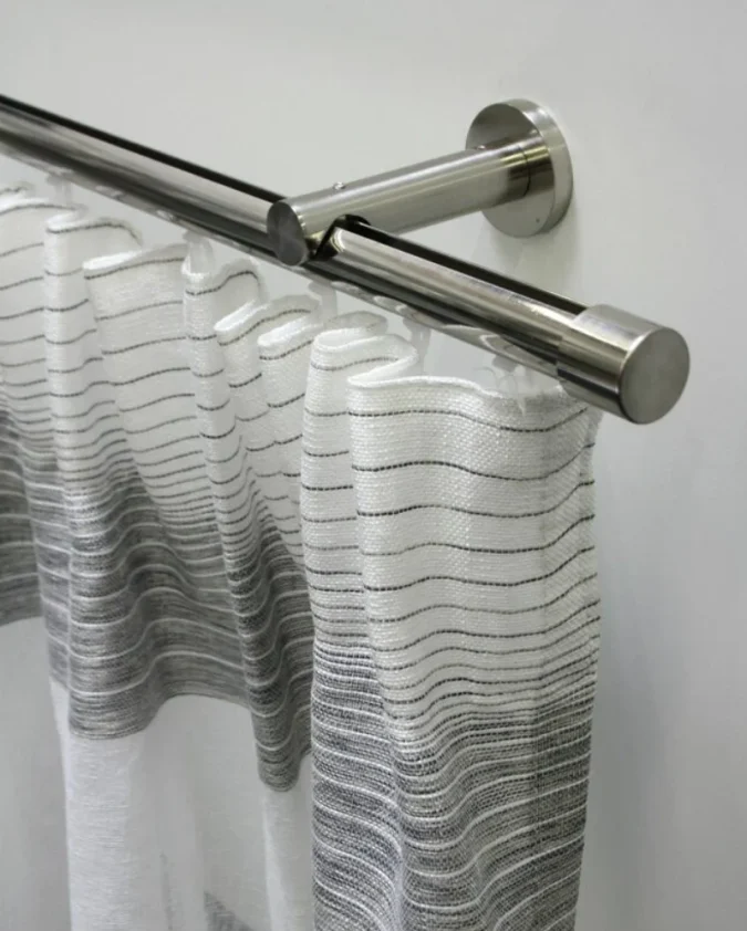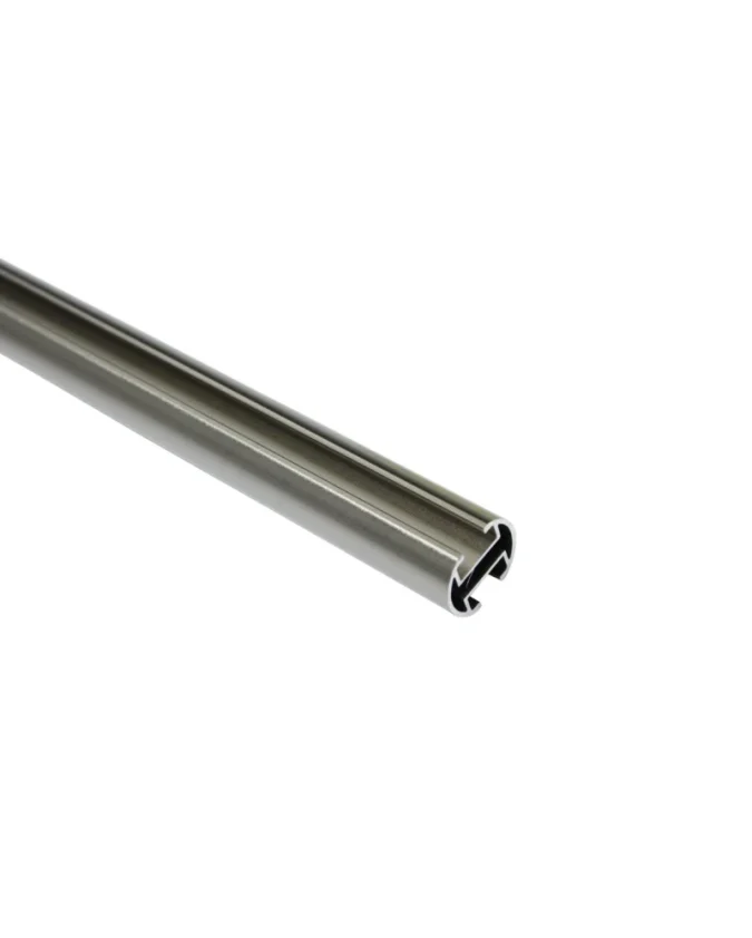 Čvrsta karniša promjera 32 mm u čeličnoj boji, idealna za veće prostore i zavjese većeg opterećenja.
