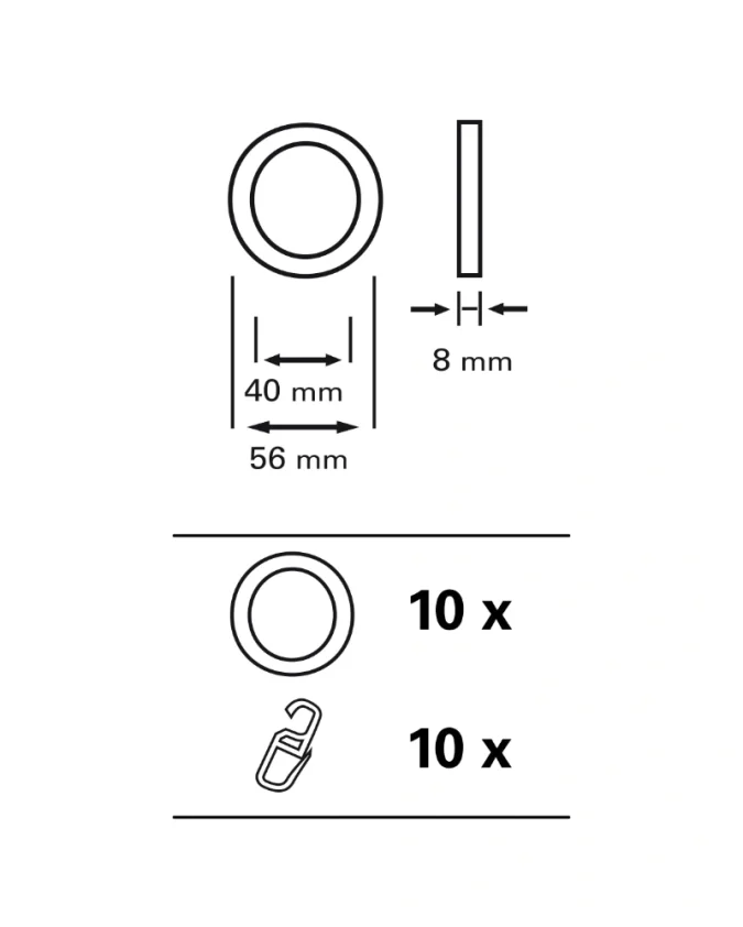 Kolutovi za karniše izrađeni od PVC-a s kukicama za nabore. Unutarnji promjer 40 mm, vanjski 56 mm.
