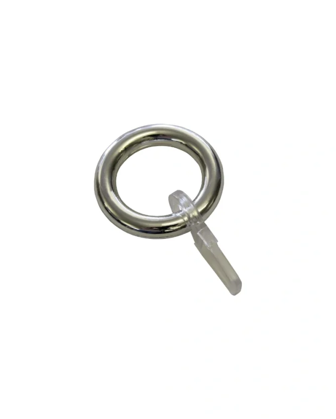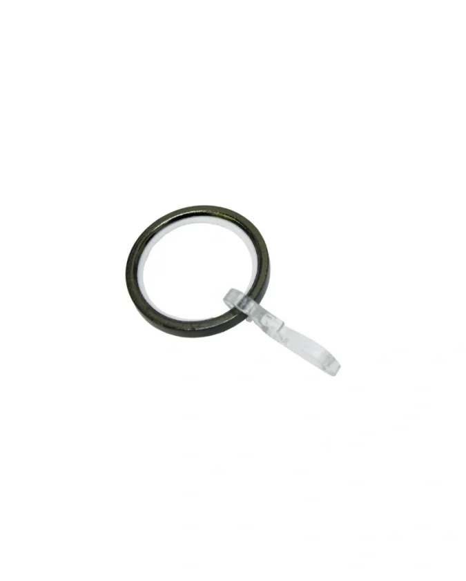 Kolutovi za karniše s kliznim umecima, izrađeni od metala, titan boje. Promjer 20 mm. S kukicama za nabore.
