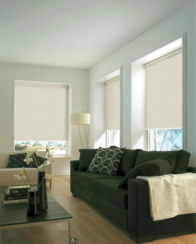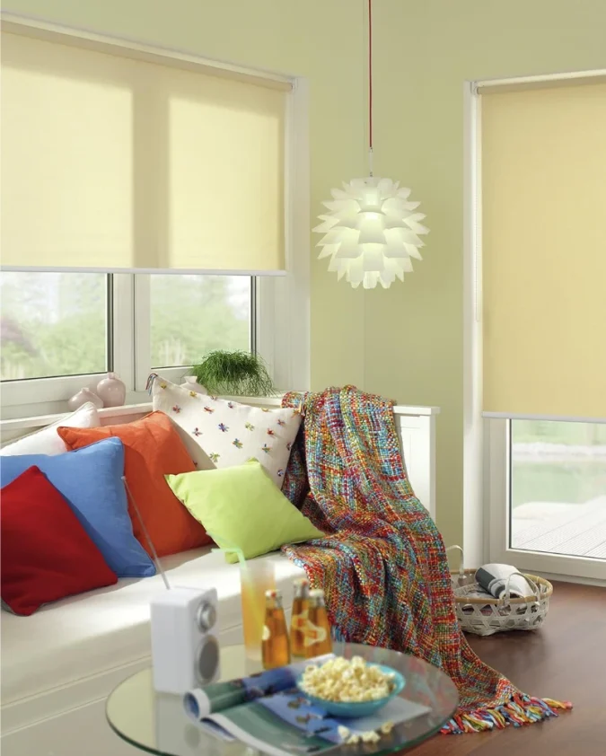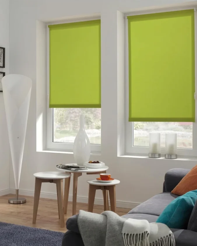 Praktična zelena rolo zavjesa Easyfix za montažu bez bušenja, funkcionalna zaštita i prirodan ugođaj u prostoru.