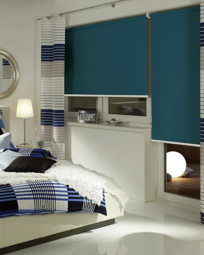 Osvježite svoj prostor plavom rolo zavjesom s bočnim zupčanikom za lako upravljanje svjetlom.