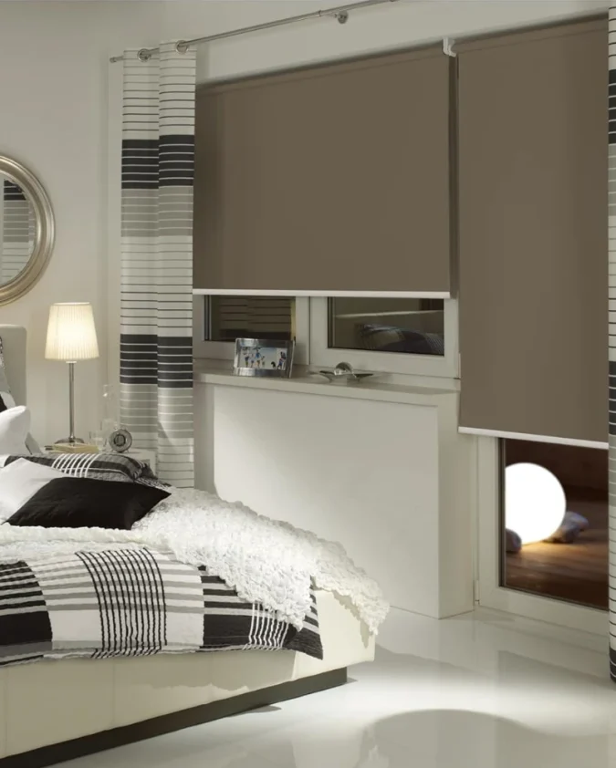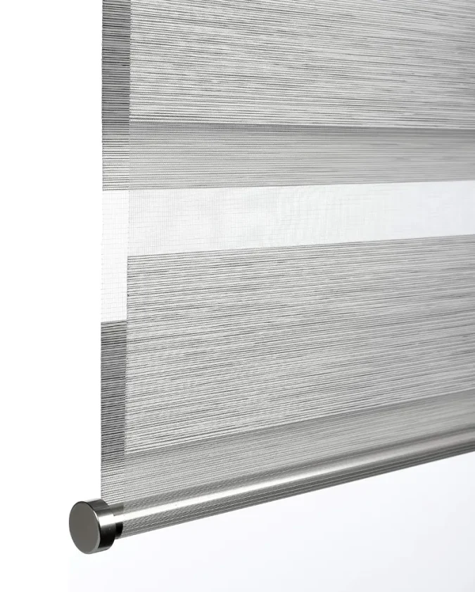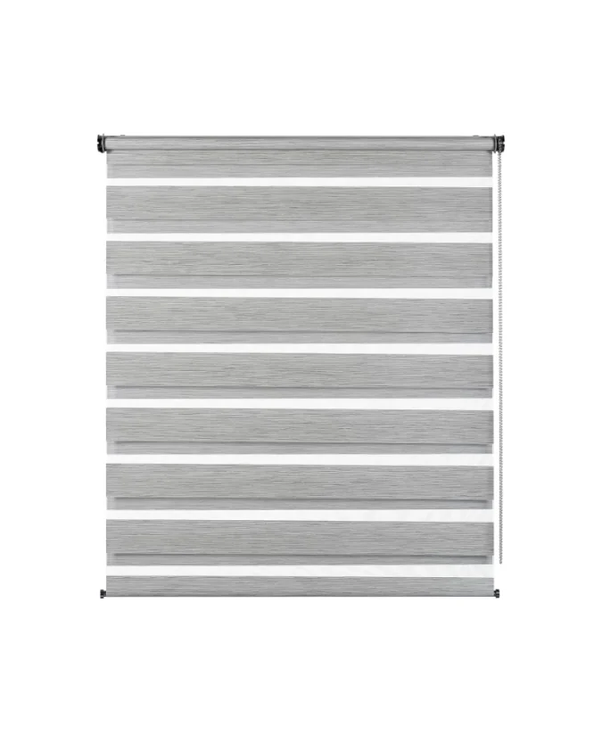 Dvostruka uglavna rolo zavjesa izrađena od 100% poliestera, s jednostavnom montažom bez bušenja. Omogućuje prilagodbu svjetlosti pomoću bočnog vučnog zupčanika koji se može montirati na obje strane.